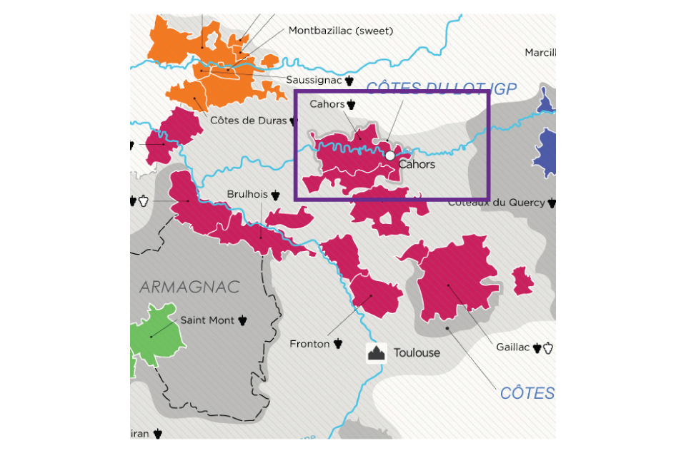 프랑스 남서부의 까오르(Cahors)는 2,000년 전부터 말벡 와인을 만들어왔던 지역입니다. 지중해와 대서양 영향을 받아 여름이 온화하고 건조한 고원지대의 특징을 가지고 있고 남서부 중에서도 가장 유명한 마을로 알려져 있죠. 구불구불한 계곡의 골짜기를 따라 포도밭이 펼쳐져 있고 석회질 토양으로 이루어져 있어 힘이 강한 품종들을 재배하고 있습니다.
