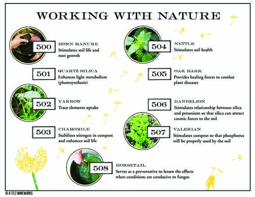 어떠한 화학재료나 과정을 사용하지 않고 음력을 기준으로 달의 주기에 따라 크게 4개로 나뉘어 양조의 순서를 나누고 재배하며 반드시 지켜야할 8개의 용법이 존재합니다. 유기농법으로 재배한 와인보다 훨씬 까다롭고 지켜야할 수칙들이 더욱 많다는 것을 알 수 있어요.
