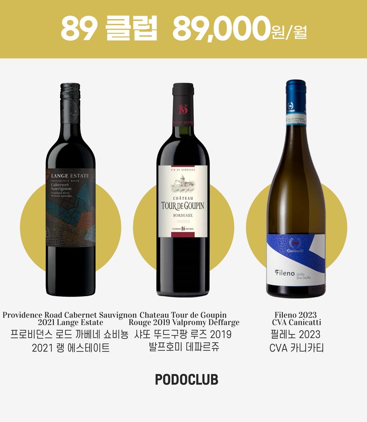 부담 없는 가격에 검증된 맛의 와인을 즐길 수 있는 89클럽①와인을 선택하기 어렵거나 다양한 와인들을 경험해 보고 싶은 분들을 위해 포도클럽이 정성껏 준비한 와인 3병을 즐겨보세요. |