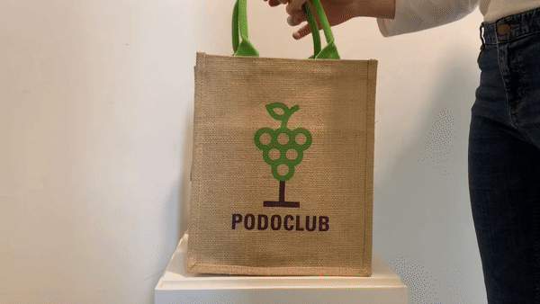 "주트 포도백" 은 친환경 소재인 주트(황마, jute)로 제작된 내츄럴하고 고급스러운 에코백입니다. 자연에서 그대로 가져온 친환경 소재로 튼튼하게 짜여졌습니다. 안쪽은 넓은 칸막이로 나누어져 있어, 와인을 비롯한 병 제품 수납은 물론 식료품 쇼핑 가방 및 다양한 가방 용도로 사용 가능합니다. 주트백의 안쪽은 물기에도 젖지 않도록 단면 방수 처리가 되어있습니다.