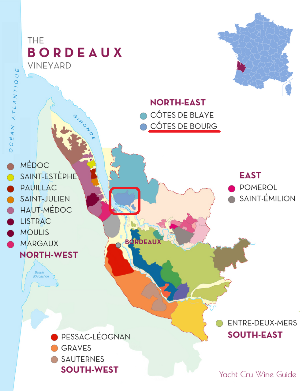 2009년, 보르도 내의 꼬뜨(Cotes) 지역을 성격이 비슷하여 판매와 마케팅을 효과적으로 운영하기 위해 Cotes de Bordeaux로 이름을 통합했지만 꼬뜨 드 부르는 포함되지 않고 독자적인 지역으로 이름을 사용하고 있어요.