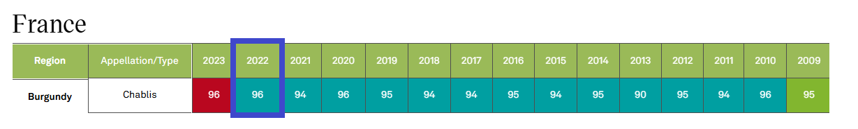 Bourgogne: Chablis 2022 빈티지 포인트: 96점