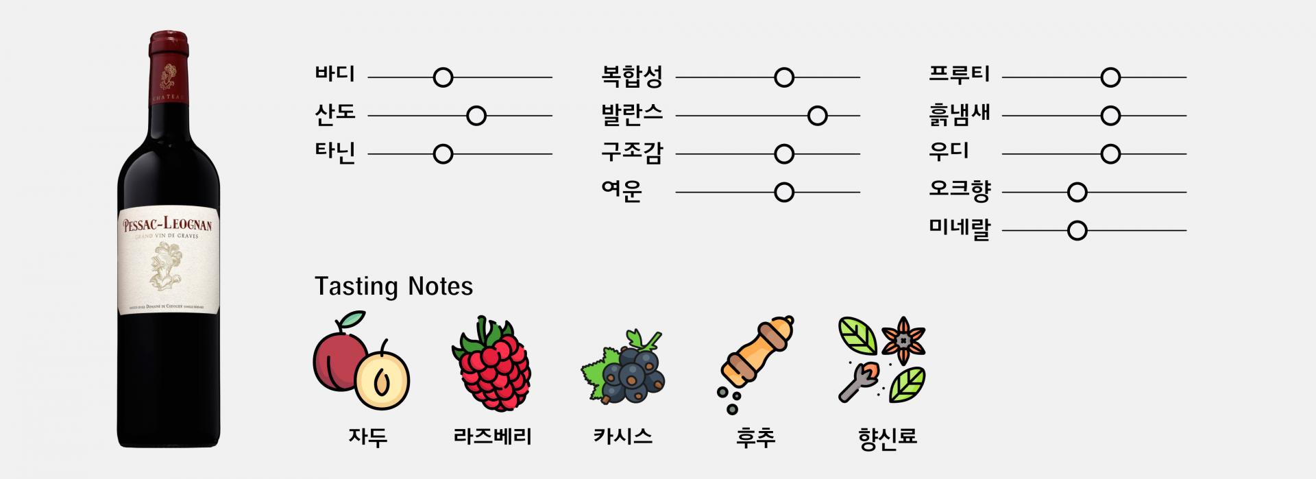 접근성이 좋고 섬세하면서도 유연한 타닌과 아름다운 밸런스를 가지고 있습니다.