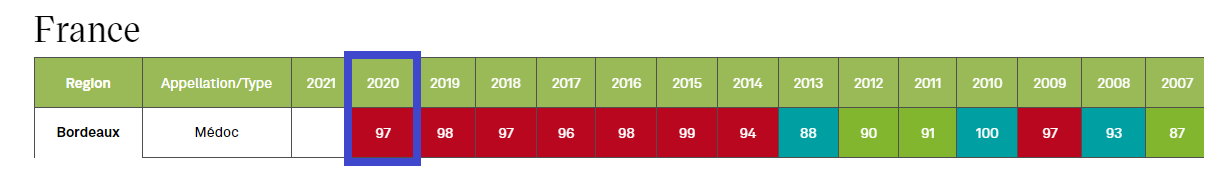 Bordeaux > Medoc 2020 : 97 점 (Wine Enthusiast)