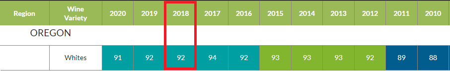 Oregon : Willamette Valley White 2018 빈티지 포인트: 92점