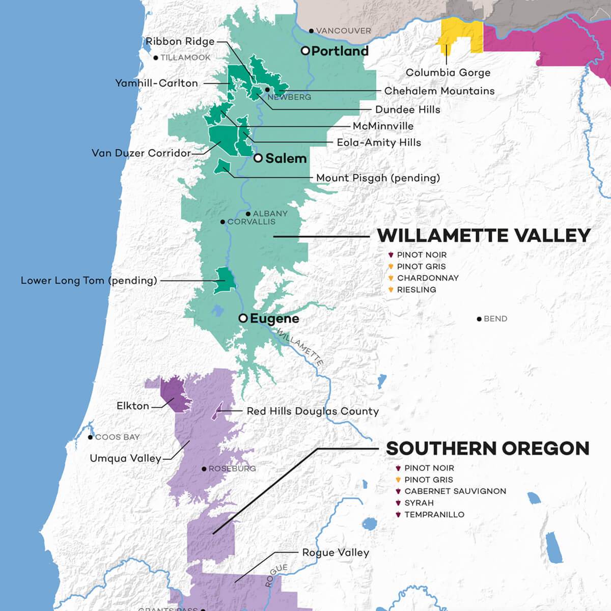미국 오레곤(Oregon)지역은 남쪽으로는 캘리포니아, 북쪽으로는 워싱턴 주와 접해있습니다. 태평양을 바라보고 위치해있는 산맥들은 지리적으로 와인 농사를 짓기에 중요한 역할을 가지요. 프랑스 피노 누아의 주요 산지인 부르고뉴 지역과 위도가 같기 때문에 서늘하고 온화한 해양성 기후가 피노 누아를 생산하기에도 적합해 와인산지로 급부상한 지역이에요. 고품질의 와인을 소량 생산하며 오레곤 안에서도 다양한 와인 밸리들이 존재하는데 윌라메트 밸리(Willamette valley)가 가장 유명하고, 그 외에도 콜롬비아 밸리(Columbia valley) 왈라왈라 밸리(Walla Walla valley)가 있습니다.