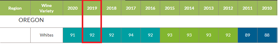 Oregon : Willamette Valley White 2019 빈티지 포인트: 92점