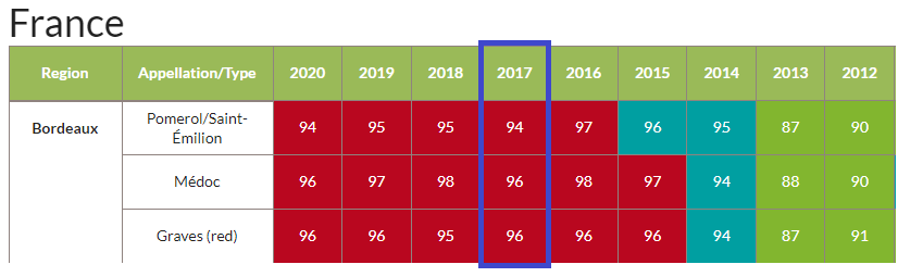 🌟Bordeaux: Red 2017 빈티지 차트: 평균 95점 이상