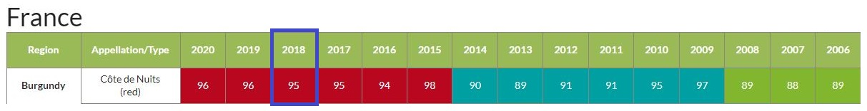 Bourgogne: Cote de Nuits (Red) 2018 빈티지 포인트: 95점