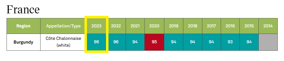 France > Burgundy(Bourgogne)> Cote Chalonnais(white) 2023: 96 점 (Wine Enthusiast)